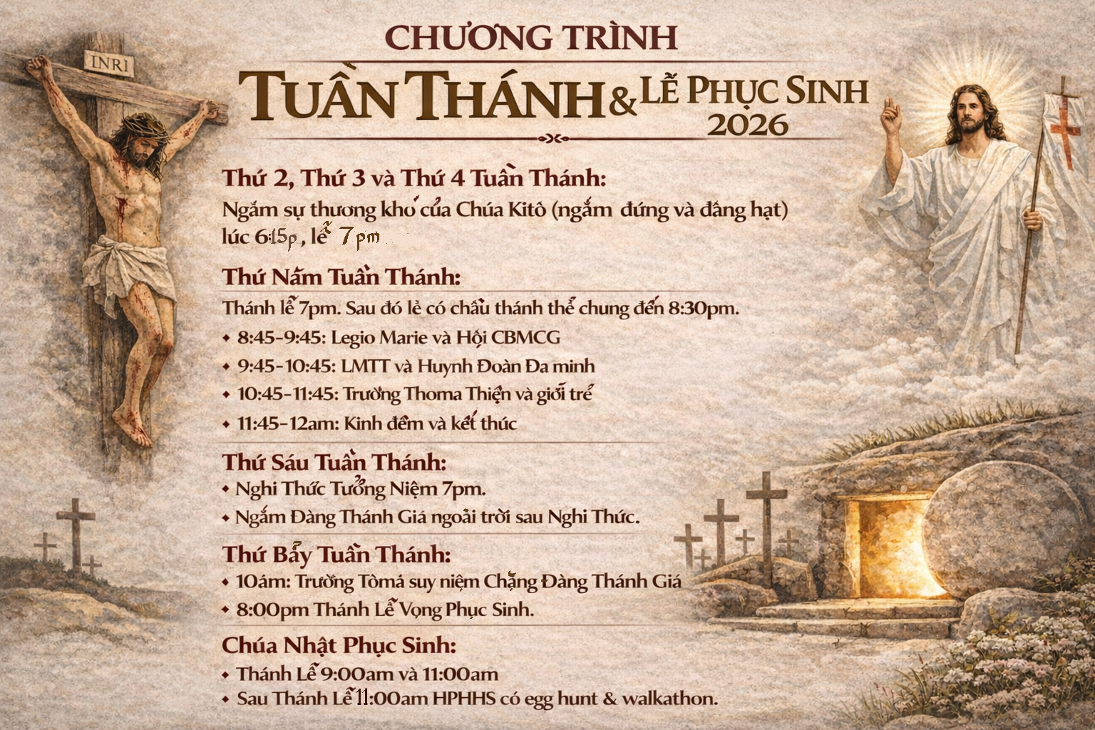 Chúa Nhật - Sunday 9:00 am 11:00 am